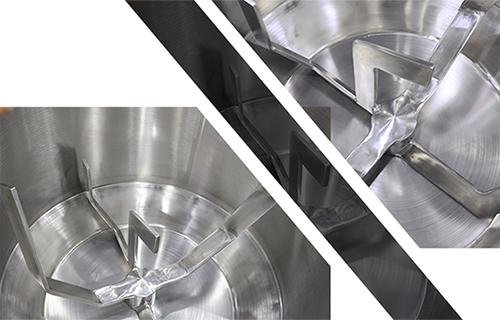 Paddle de aço inoxidável com estrutura científica, capaz de misturar completamente a matéria-prima;